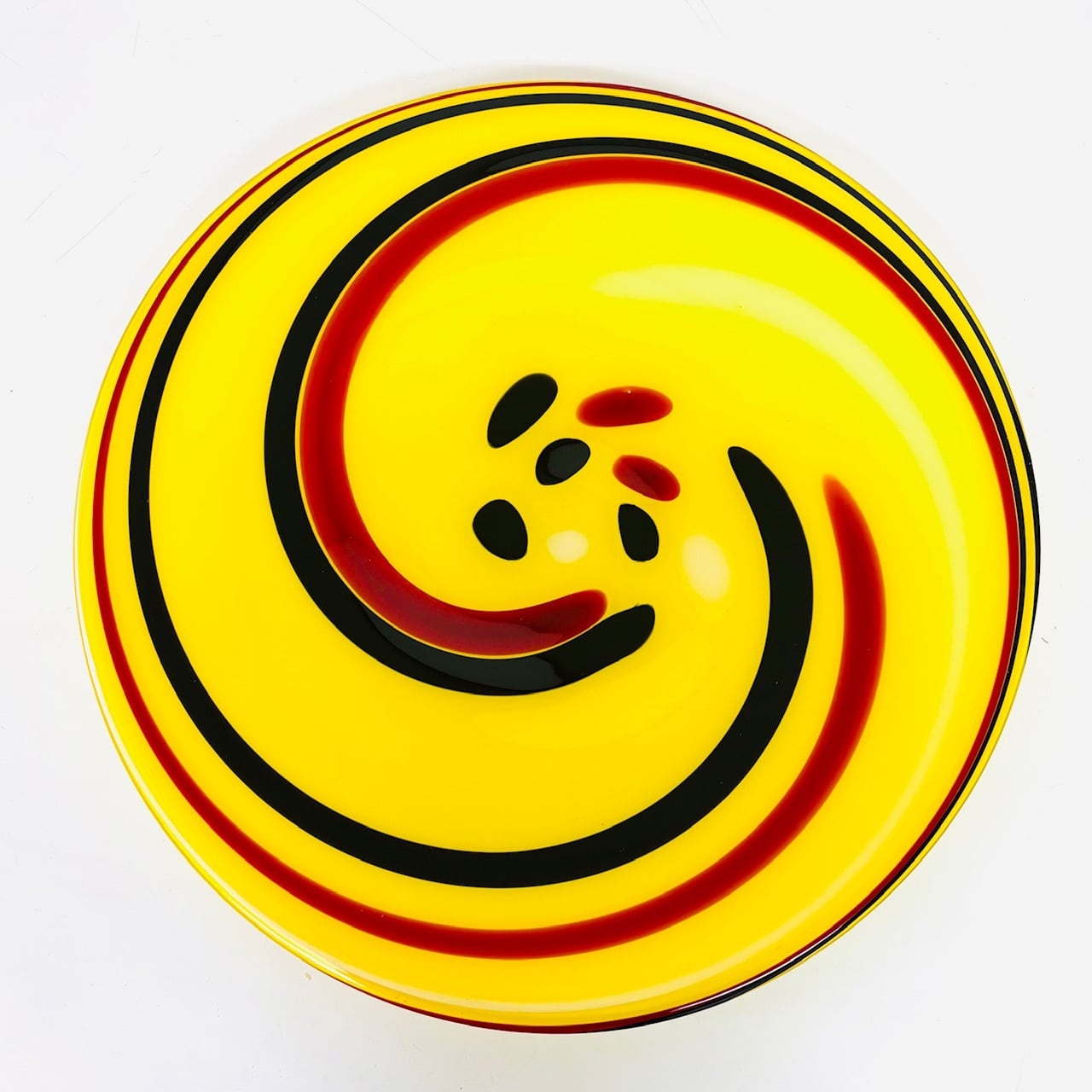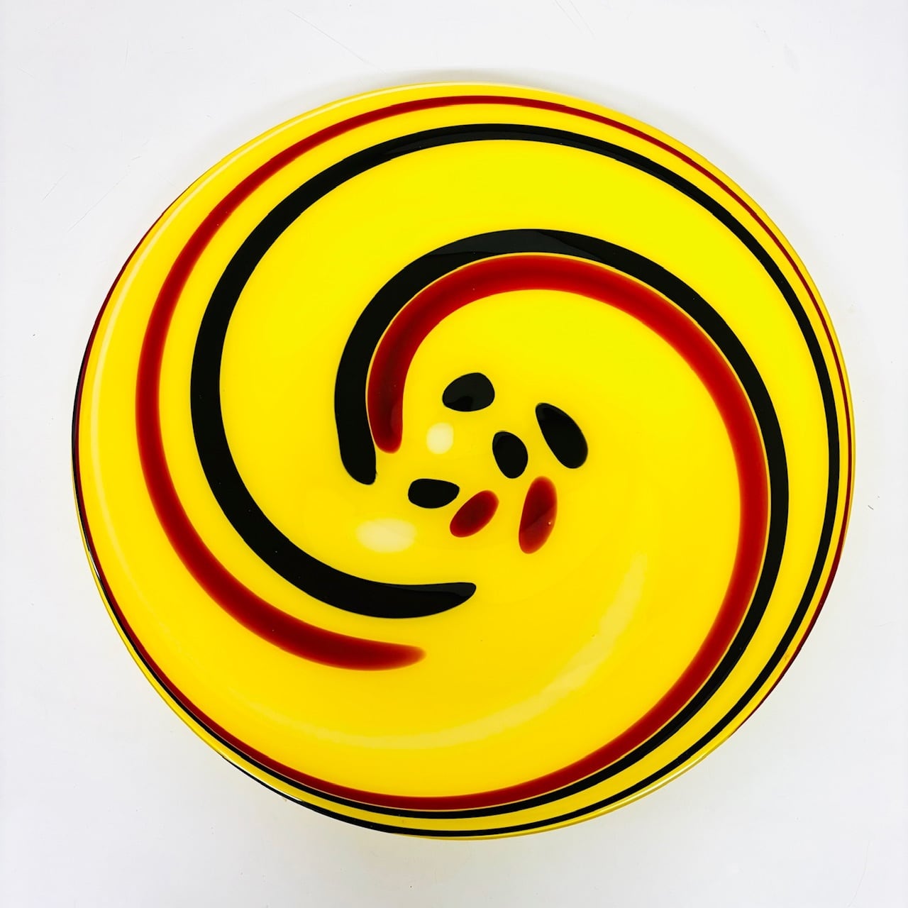 80s ポストモダン洋画家 藤森兼明 加藤工芸 大皿 アートガラス KANEAKI FUJIMORI Art Glass Platter ビンテージ アンティーク 古道具 ②
