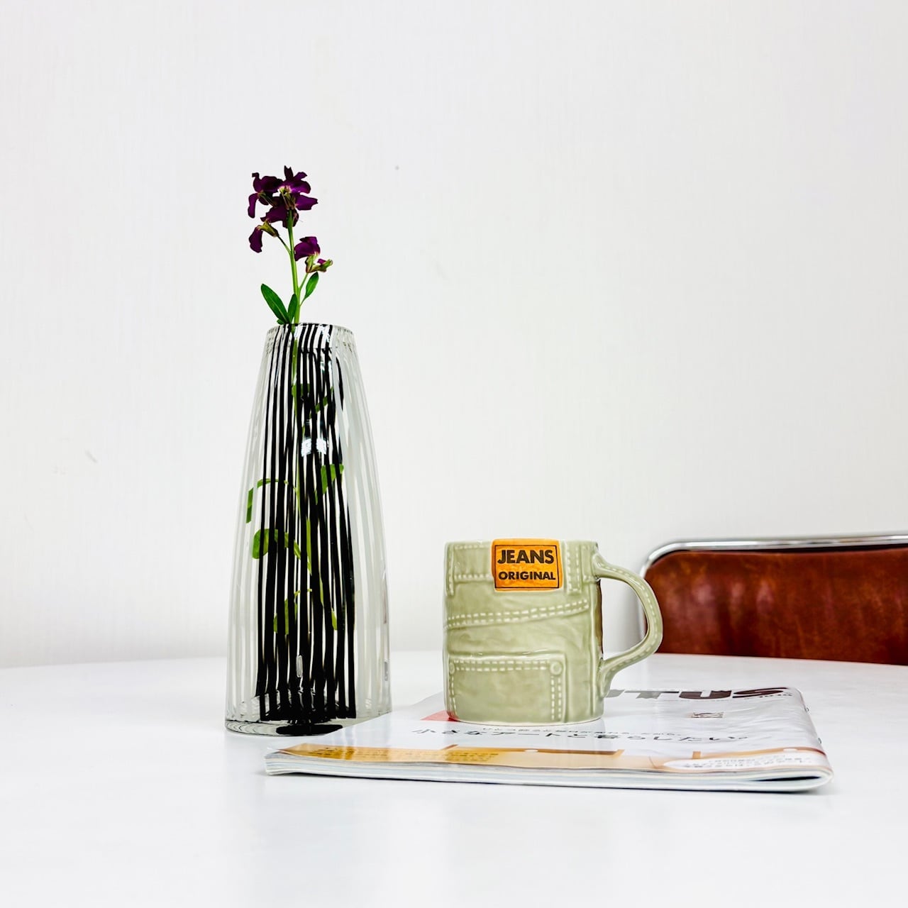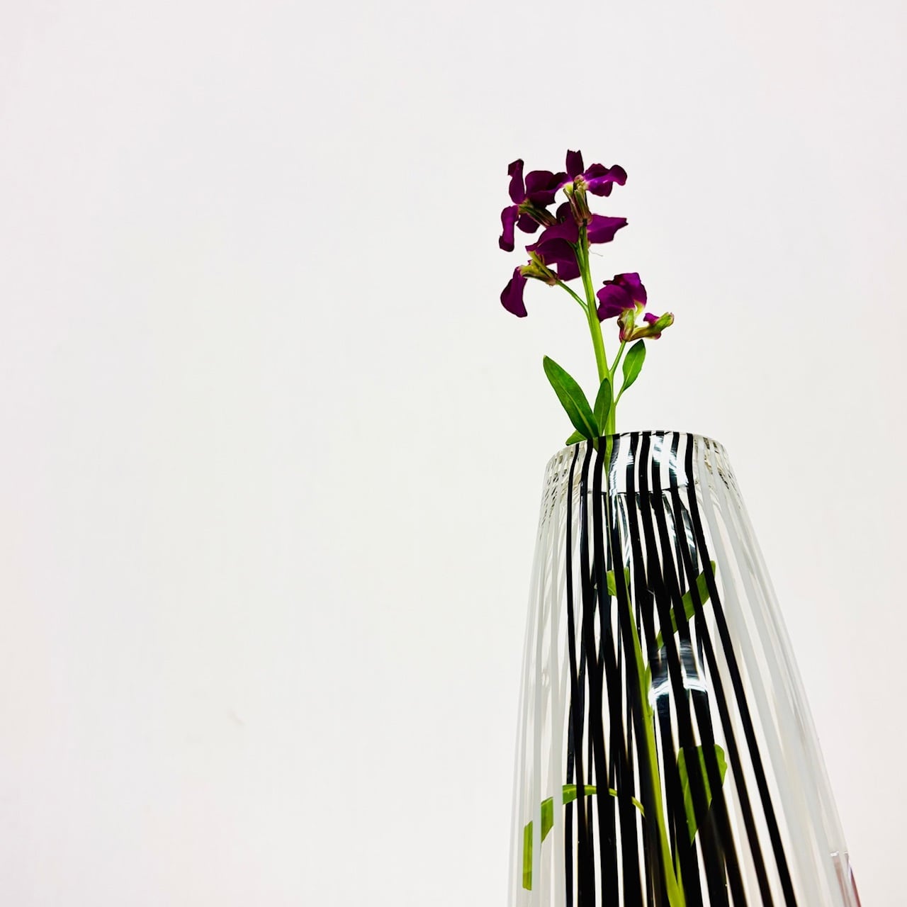 80s ポストモダン フラワーベース 花瓶 アートガラス ストライプ ビンテージ アンティーク 古道具