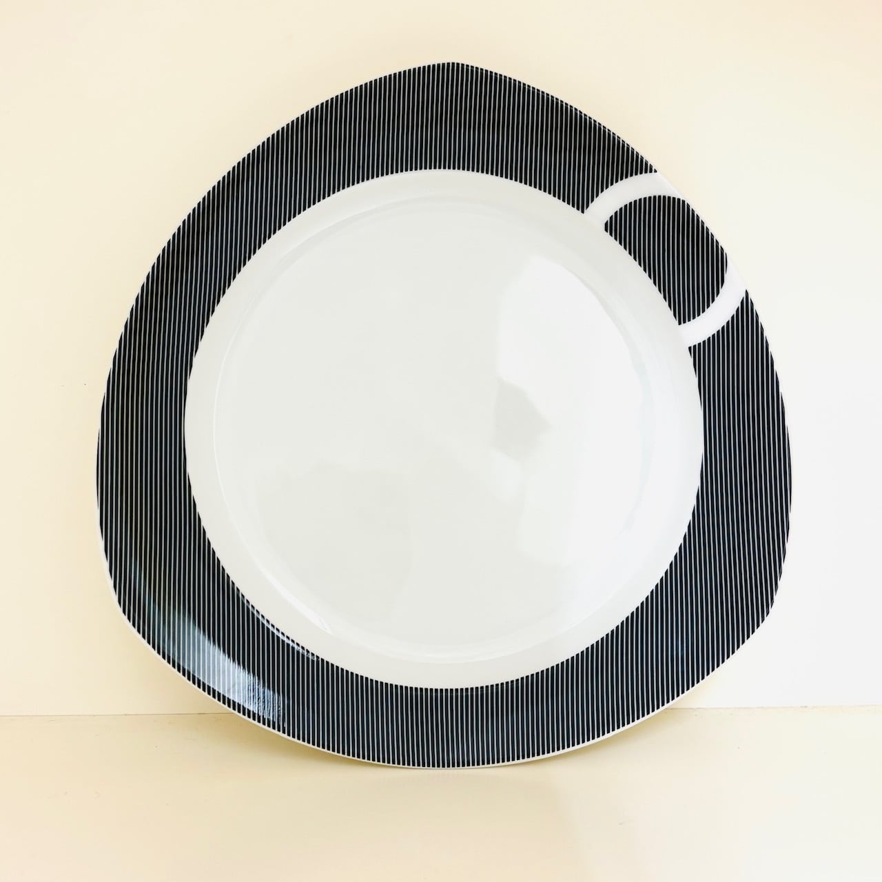 Thomas(トーマス)ケーキ皿 三角皿 ローゼンタール 白×黒ストライプ ポストモダンデザイン ドイツ製