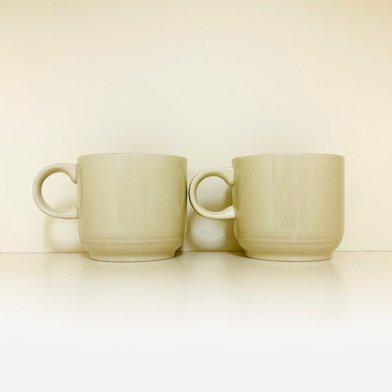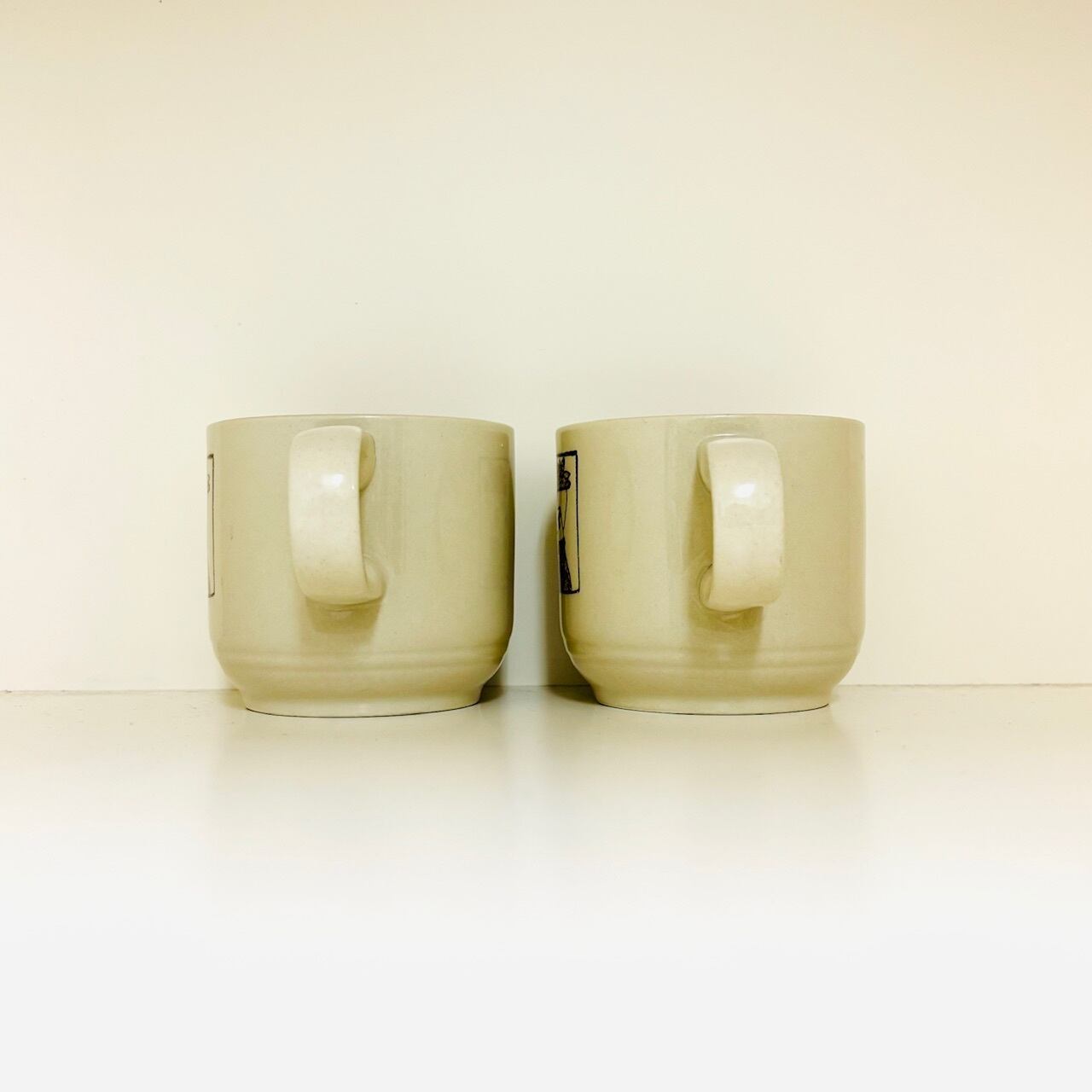 細いラインで描かれた素朴なイラストが印象的な、コーヒーカップ2個セットです。
