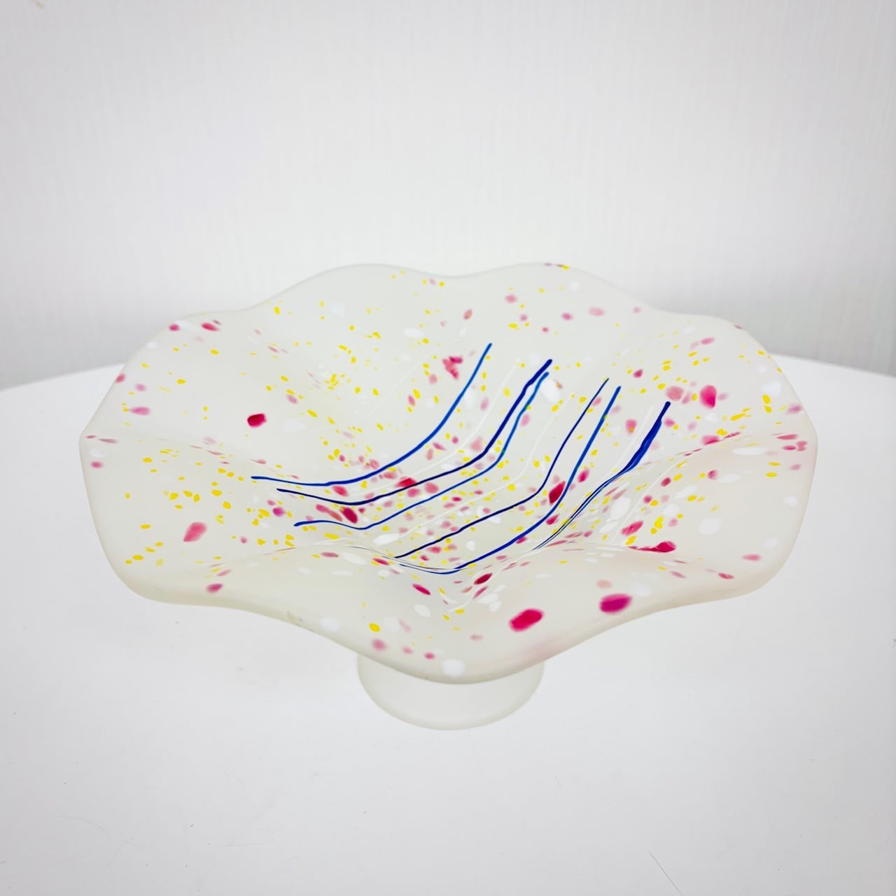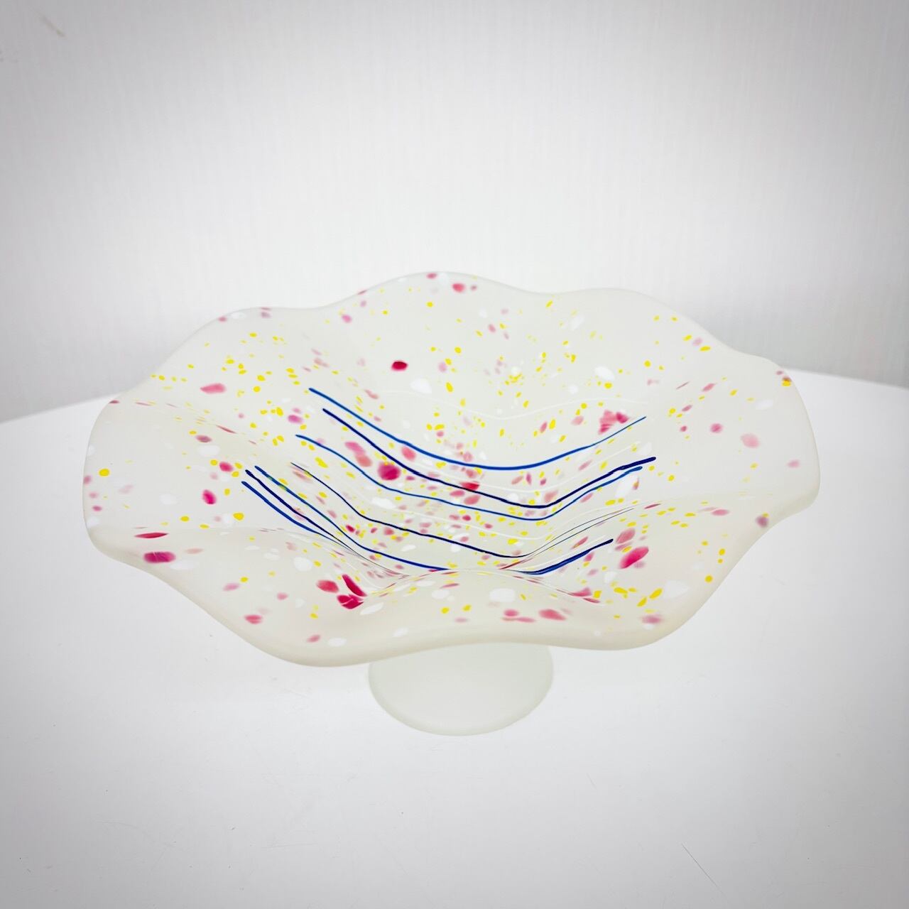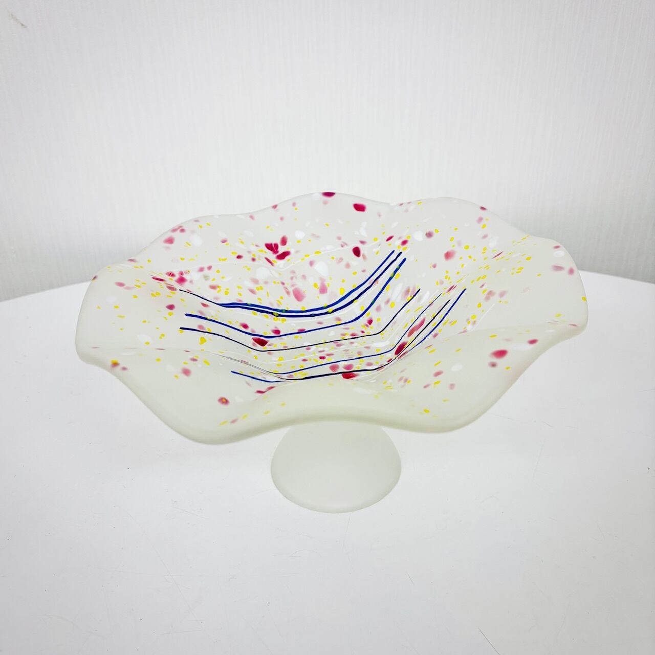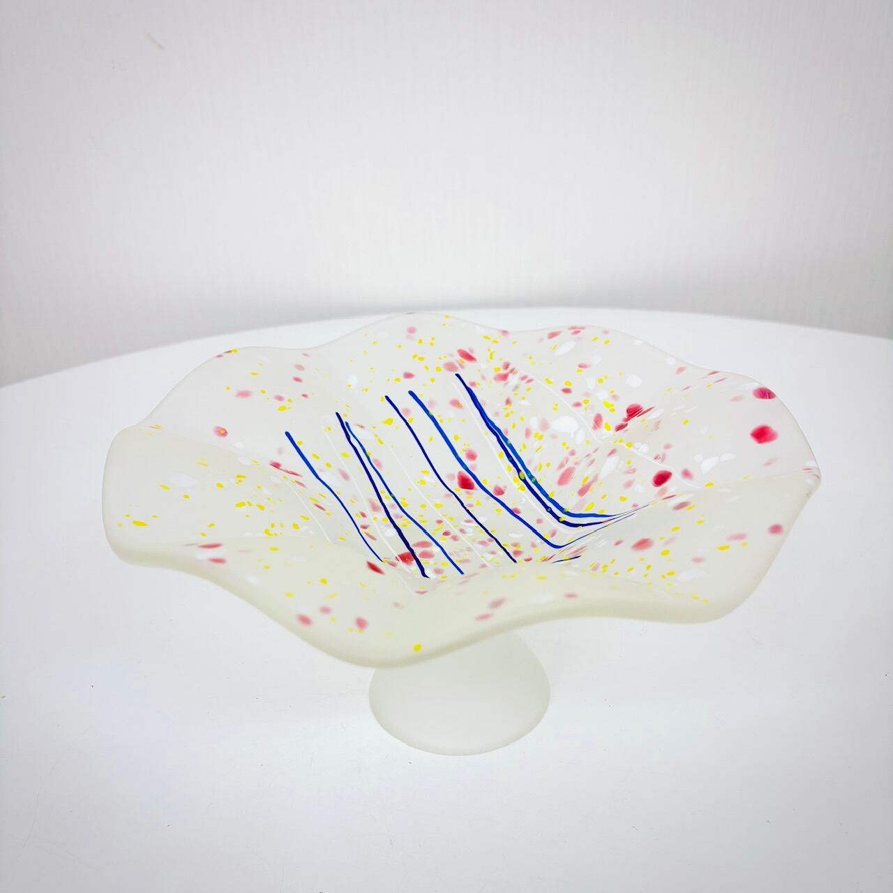 曇りガラスに、色粉(パウダー)や色粒をまぶす「色粉散らし」の技法で仕上げたコンポート。