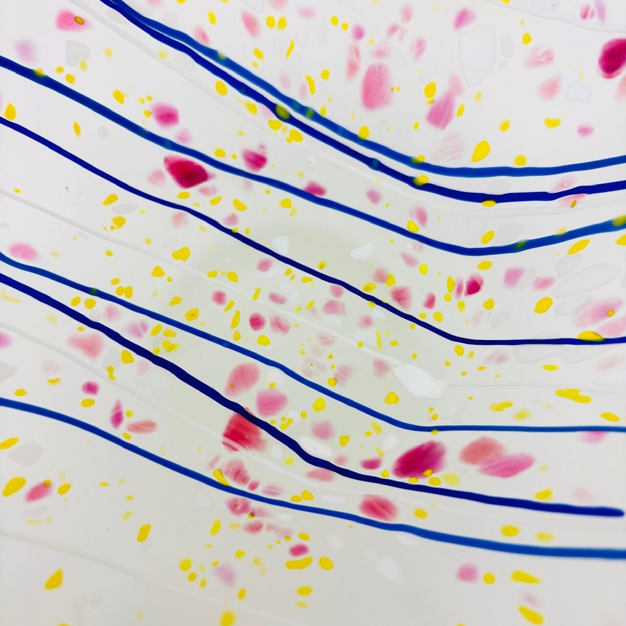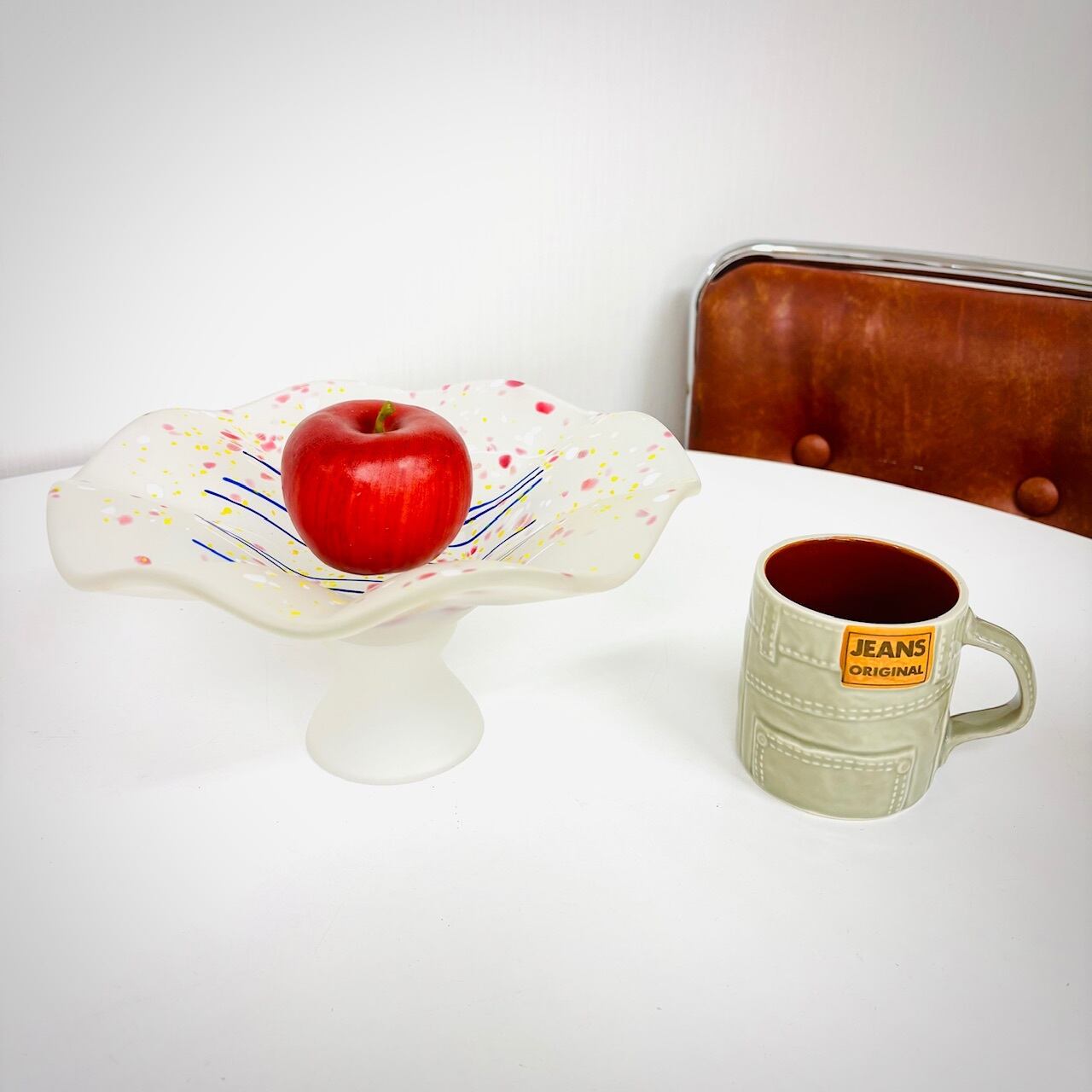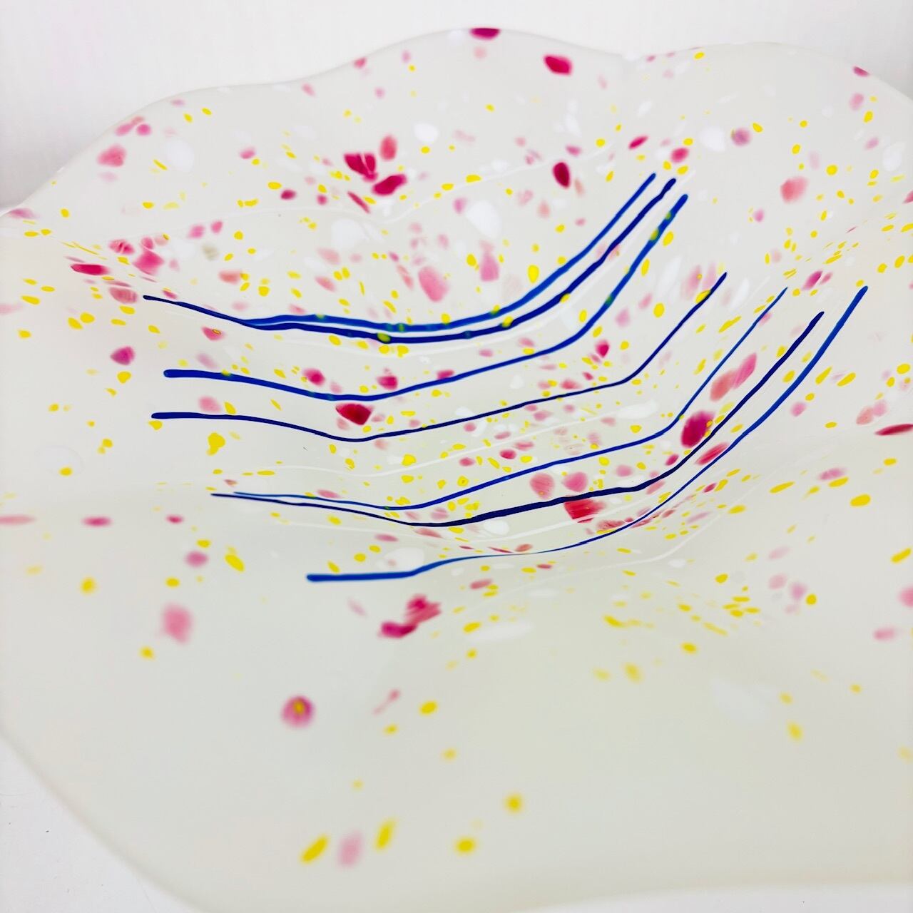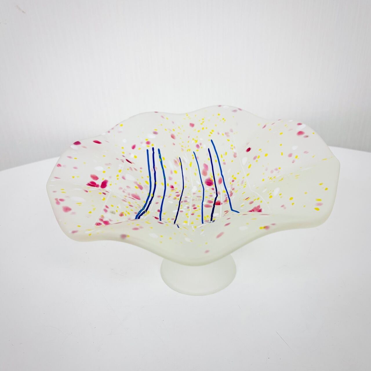 曇りガラスに、色粉(パウダー)や色粒をまぶす「色粉散らし」の技法で仕上げたコンポート。
